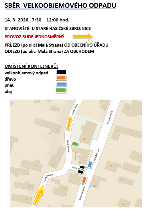 proběhne v sobotu 14.3.2026 od 7:30-12:00 hod u hasičské zbrojnice. Pro rychlejší odbavení, prosíme, dodržujte stanovená pravidla. Děkujeme.